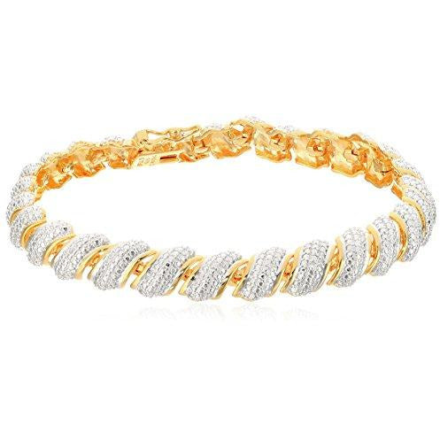 Make a statement with this stunning two-tone tennis bracelet, featuring a timeless twisted design. Crafted in sterling silver and plated with luxurious 18K yellow gold, this bracelet shimmers with diamond accents that add a touch of brilliance to every movement. The elegant contrast between gold and silver enhances its sophisticated appeal.