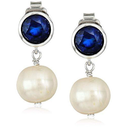 MORGAN & PAIGE 925 Sterling Silver Bezel-Set Gemstone Birthstone and 8mm White Freshwater Cultured Pearl Post Drop Earrings