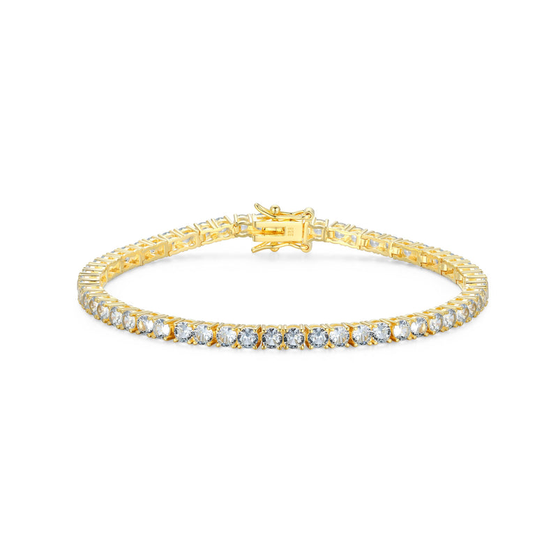 Celebrate classic beauty with this stunning tennis bracelet, featuring brilliant round-cut gemstones set in luxurious 14K gold-plated or rhodium-plated sterling silver. Available in various gemstone options, this bracelet offers timeless sophistication and radiant sparkle, making it the perfect accessory for any occasion.